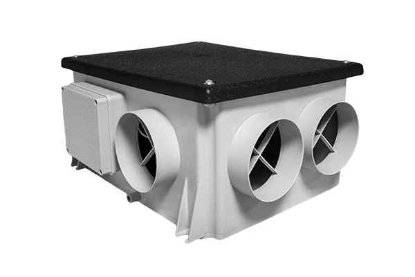 Ventilatsiooniseadme väliskest on valmistatud ühest polüpropüleenist (PP) korpusest, värv RAL 7035, et tagada maksimaalne tihedus. Ülemine kate peab olema valmistatud tugevast ja vastupidavast ABS-plastist. Energia säästmiseks on standardvarustuses EC-välise rootoriga mootorid. Varustatud integreeritud termilise kaitsega, paigaldatud suletud kuullaagritele ja vibratsioonivastastele tugedele. Ettepoole kaardus tsentrifugaaltiivik, mis on dünaamiliselt tasakaalustatud ja mootori poolt otse käitatav, tagab seadmes sujuva õhuvoolu. Mitu väljatõmbeava kondensaadi samaaegseks eemaldamiseks märgadest ruumidest ja seisva õhu eemaldamiseks köökidest ja abiruumidest: Ø125 mm väljalaskeava õhu väljatõmbeks õue ja 4 x Ø125 mm sisselaskeava seisva õhu väljaimemiseks seestpoolt.